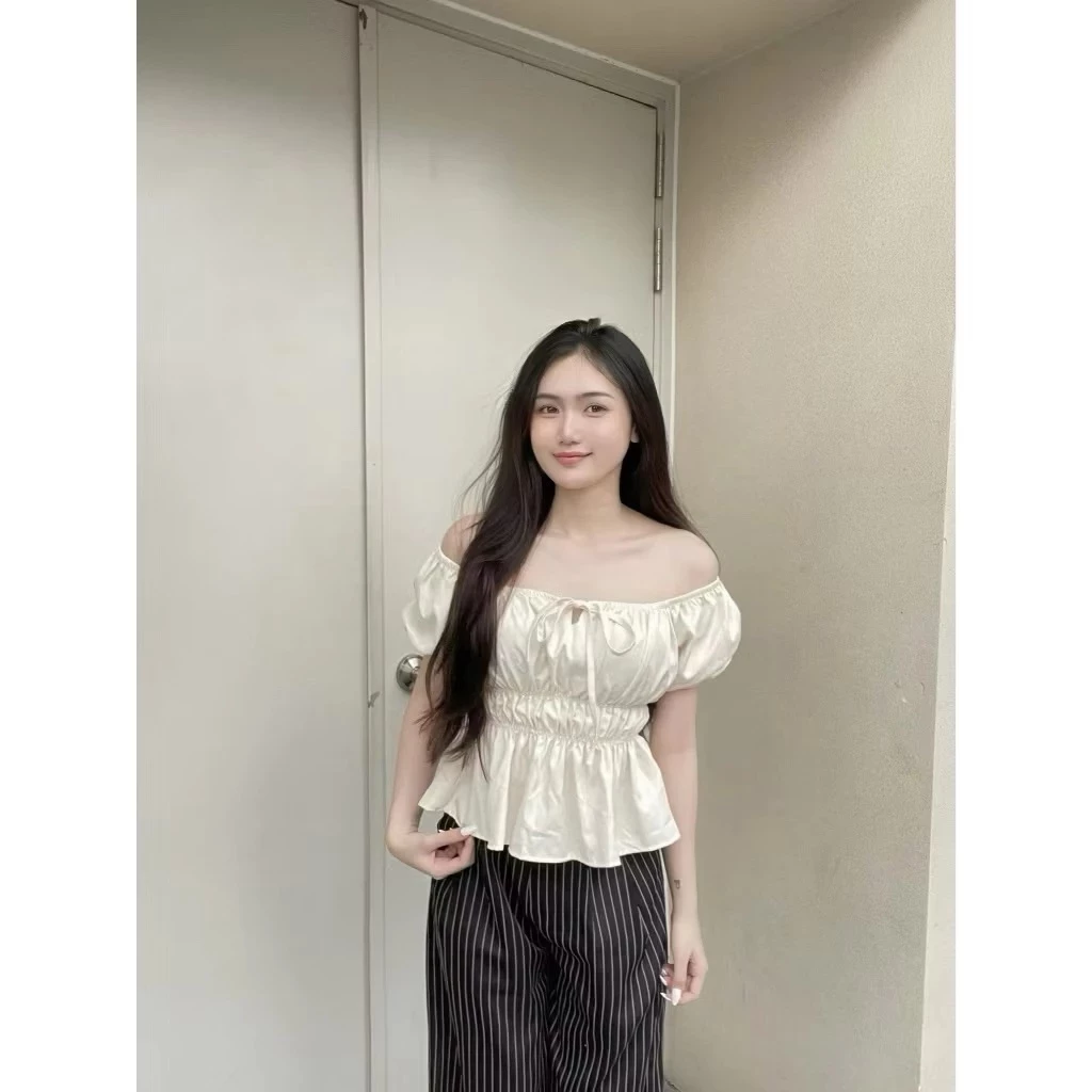 Mang hơi thở nhẹ nhàng và lãng mạn, chiếc áo Babydoll tay phồng chính là “nàng thơ” trong tủ đồ của bạn. Thiết kế đặc trưng kiểu trễ vai buộc nơ, tôn lên bờ vai mảnh mai và nét duyên dáng tự nhiên.
