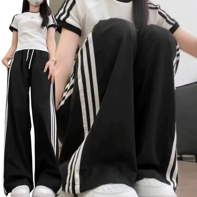 – Quần thể thao 3 sọc nữ ống rộng viền kẻ sọc trắng có dây rút kéo – Quần kaki ống rộng co giãn đi học, tập thể dục